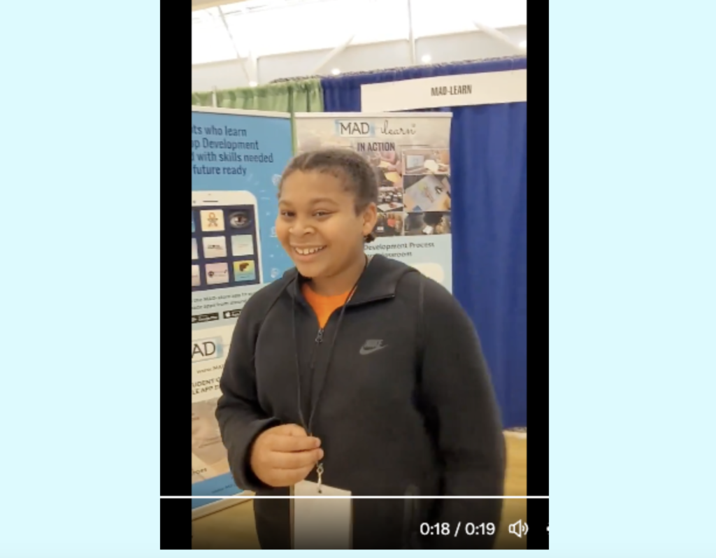 Teachers and students in Memphis-Shelby lit up the room at the I AM THE FUTURE Tech Xplosion event held last week to expose middle schoolers to new technologies.  MAD-learn had the privilege of showcasing mobile app development and our virtual internship program at the vendor fair.  We’re so excited for all the new teachers and students who will start using MAD-learn. Our favorite part of the event was students coming to our booth, looking at us, looking at each other, and exclaiming, “Whoa! We did this! We made an app!” In just the first year of our partnership with the district CTE and Tech Xperts teams, we already have over 800 students who have built mobile apps.