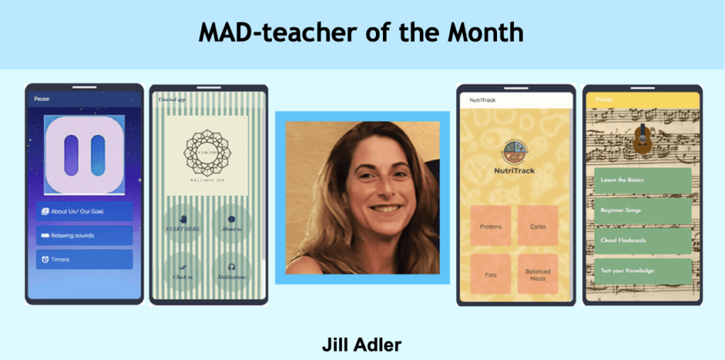 We’re excited to shine a spotlight on Jill Adler, one of our newest MAD-learn teachers- and what a debut it has been! In just a quarter, this Library Media Specialist at St. Anthony’s High School in Huntington, NY, has hit the ground running, guiding students through the design thinking process and helping them build their very first apps. We love seeing the creative designs of her students’ apps and how excited she is to bring new experiences to her classroom. Great work, Jill!